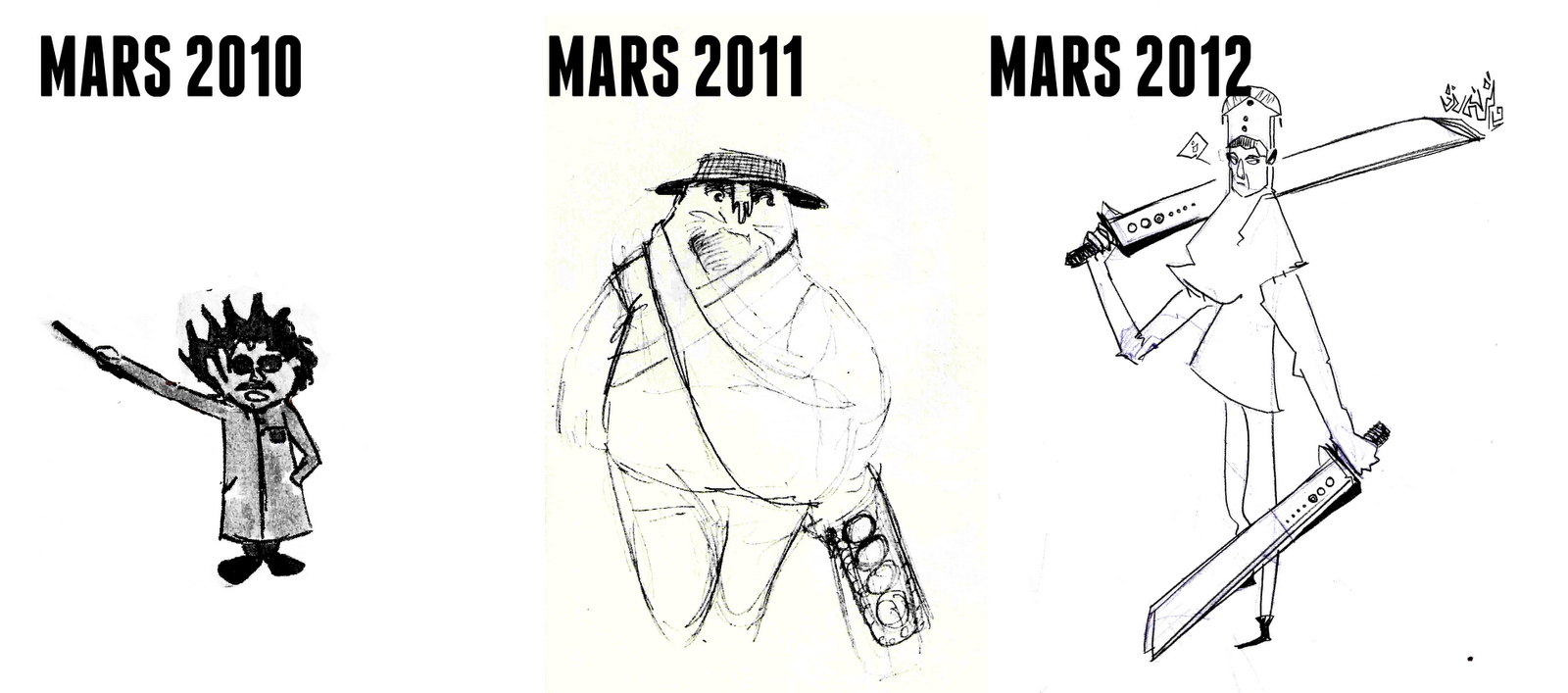j'ai fouillé dans mes carnets pour voir les croquis qui reflètent mon niveau à chaques périodes.